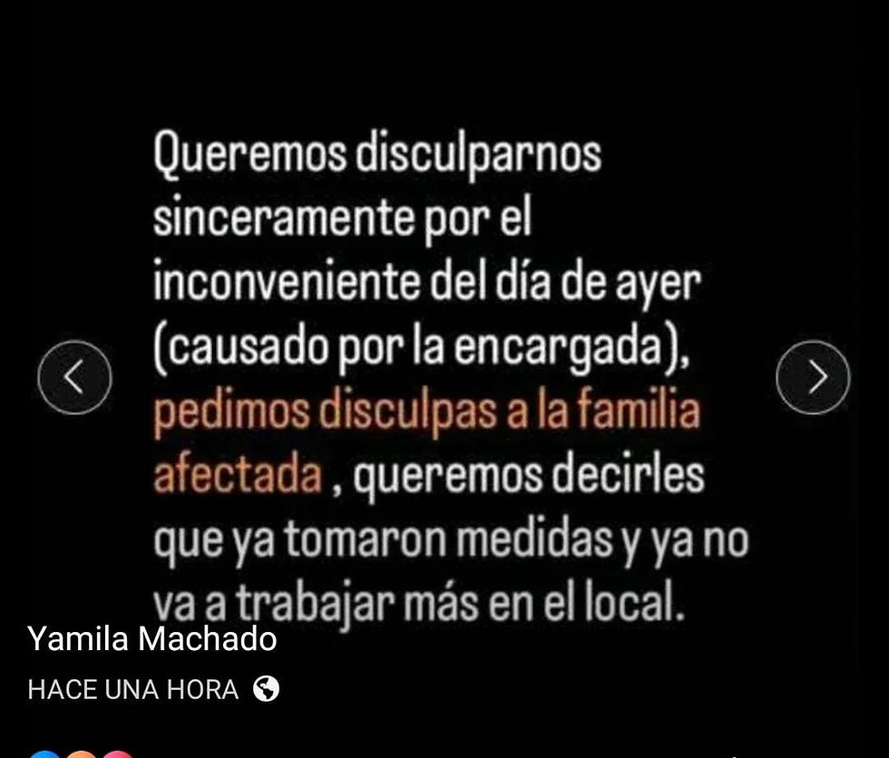 Luego de publicado el suceso en las redes inmedaitatmante el comercio emitió un comunicado.
